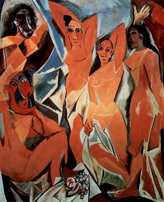 Het kubisme (1907) zendt het oog wandelen. Het is een duidelijke breuk met de betrachting de realiteit vanuit één standpunt voor te stellen. Het poogt verschillende invalshoeken samen te brengen. Voorloper is hier Cézanne, die de essentie van de Mont Sainte-Victoire wou weergeven door verschillende perspectieven samen te brengen. Voorbeeld: Pablo Picasso, Les Demoiselles d’Avignon, 1907.