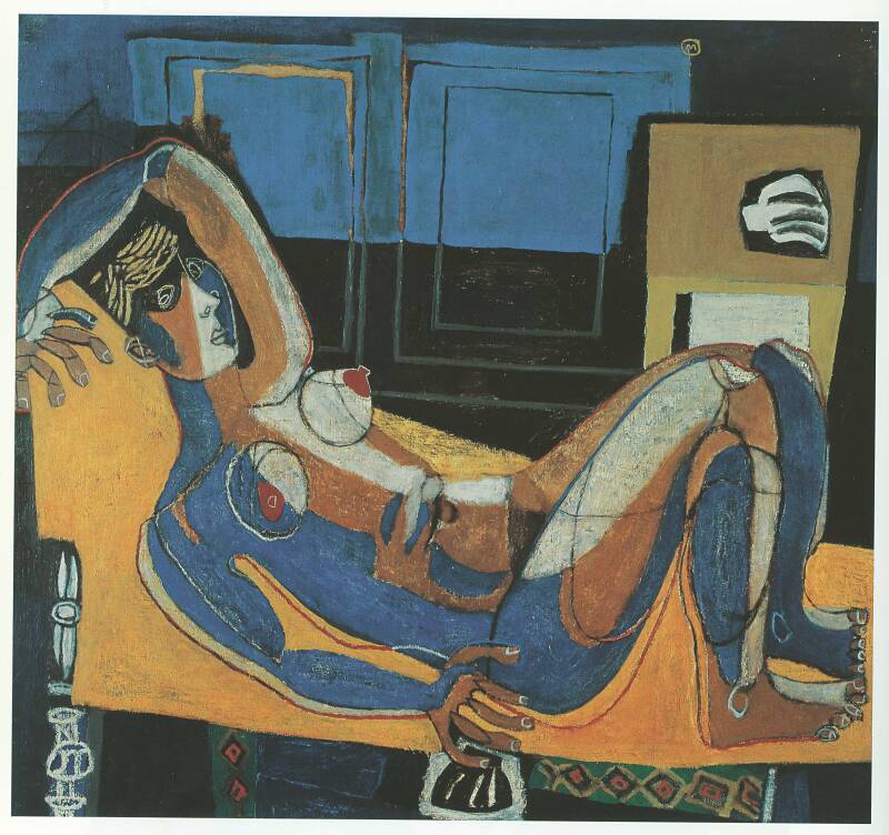 De Amerikaanse kunst heeft ongetwijfeld haar invloed op zijn werk gehad, maar hem in het kamp van de lyrische abstracten stoppen, zou verkeerd zijn. Hij bracht niet minutieus de verf aan, zoals de expressieve surrealisten van de Neue Sachlichkeit deden. Maar schilderen was voor hem ook geen paringsdans waarbij gestueel de verf op het doek gespat werd. Het was eerder een slow, waarbij affiniteiten en de onrust ten aanzien van de wereld, rustig vanuit de innerlijke verwerkingen ervan op canvas overgeplaatst werden. Lyrisch is dat wel, maar niet abstract. Zijn blije of angstige figuren bevinden zich in een abstracte omgeving die de indrukken bevestigen. Ja, een soort impressionisme van het gevoel. Decors opgebouwd uit abstracte elementen versterken de emotionele beleving van de personages, projecties van de eigen gevoeligheid van de schilder. Precies daarom zijn het geen decoratieve toevoegingen, maar substantiële ondersteuningen van de boodschap.
